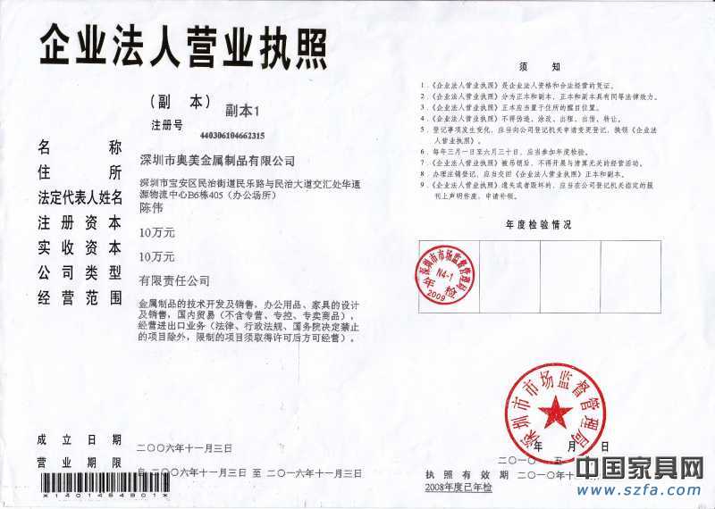 | 發(fā)證機(jī)構(gòu): | 深圳市市場監(jiān)督管理局 | 發(fā)證時(shí)間 : | 2006-11-03 |