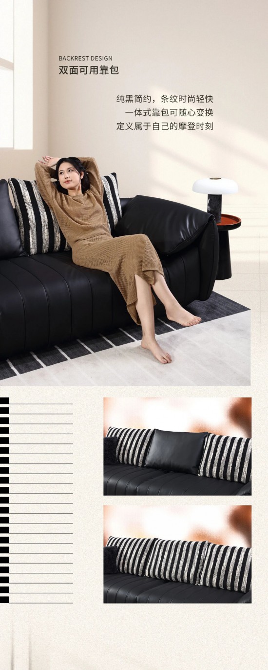 核心提示:純黑簡約,條紋時尚輕快,一體式靠包可隨心變換,定義屬于自己的摩登時刻。