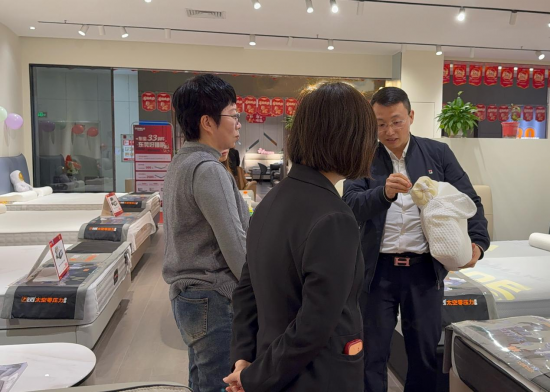 郭總模擬銷(xiāo)售現(xiàn)場(chǎng),用自己的專(zhuān)業(yè)健康睡眠知識(shí)為消費(fèi)者推薦適合他們產(chǎn)品,現(xiàn)場(chǎng)促成開(kāi)單。